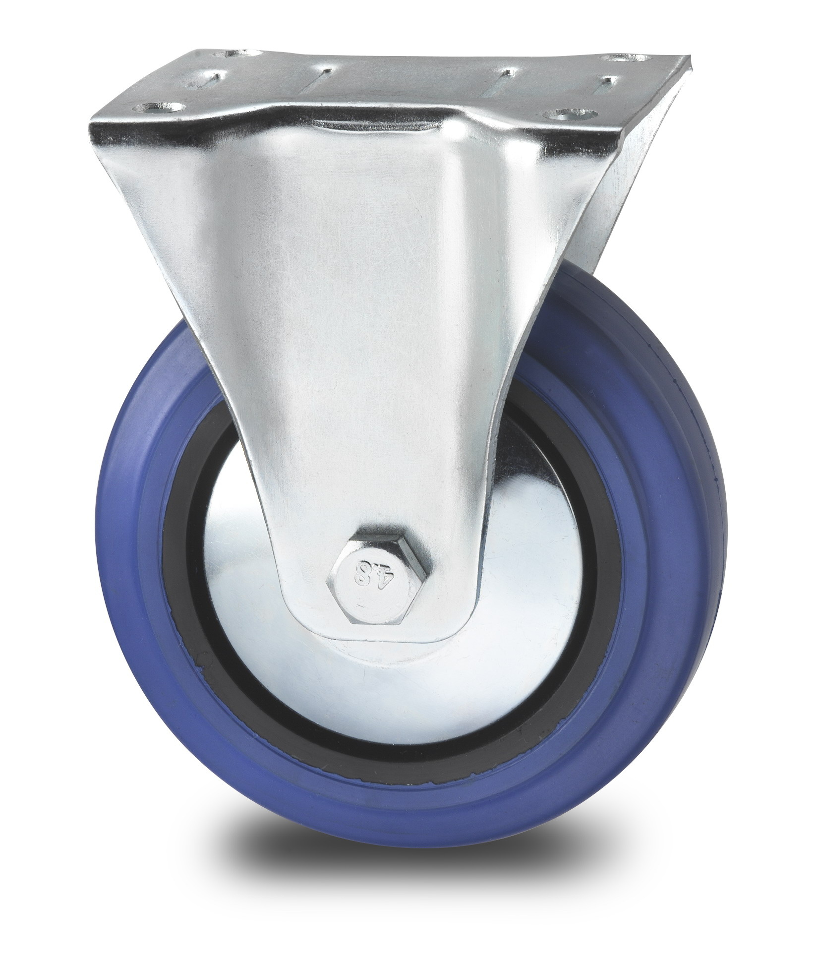 Industrial Fixed castor from pressed steel, plate fitting, elastic-tyre, roller bearing, Wheel-Ø 100mm, 150KG