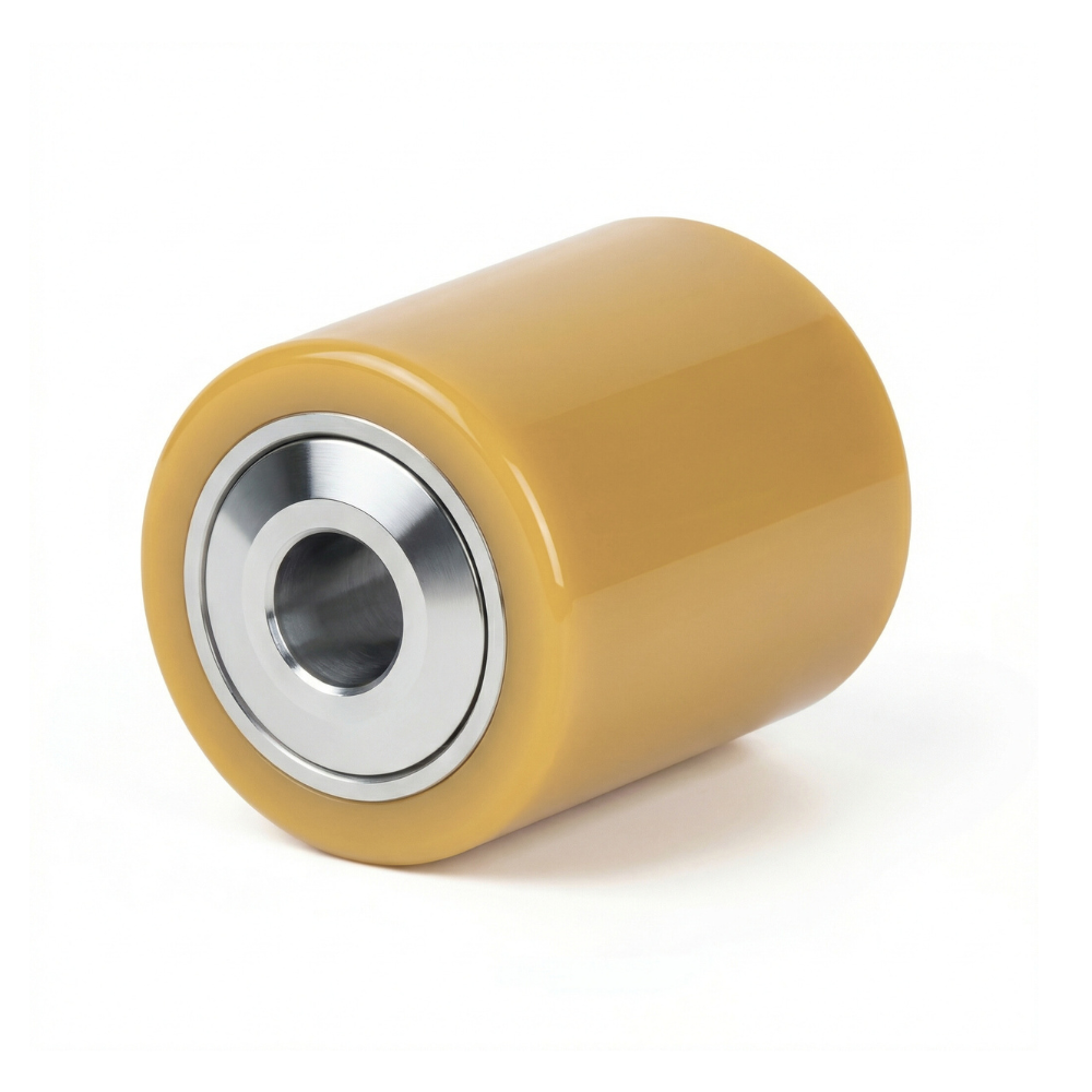Pallet roller with metal watertight ball bearing protection sealing, firmly bonded Vulkollan tread.