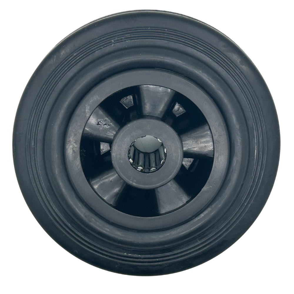 Features: The solid rubber tires have a hardness o 0 ° Shore A and offer good handling, quiet ride, shock and impact resistant, corrosion resistant and have an average rolling resistance.