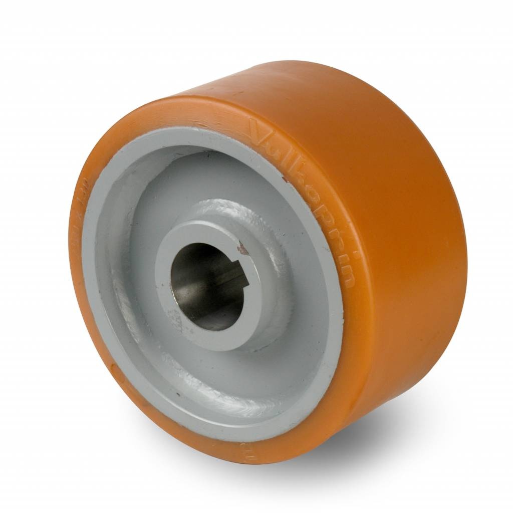 wiel: aandrijfwiel Vulkollan® Bayer loopvlak staalgelaste kern met boring H7 spiebaan volgens DIN 6885 JS9
