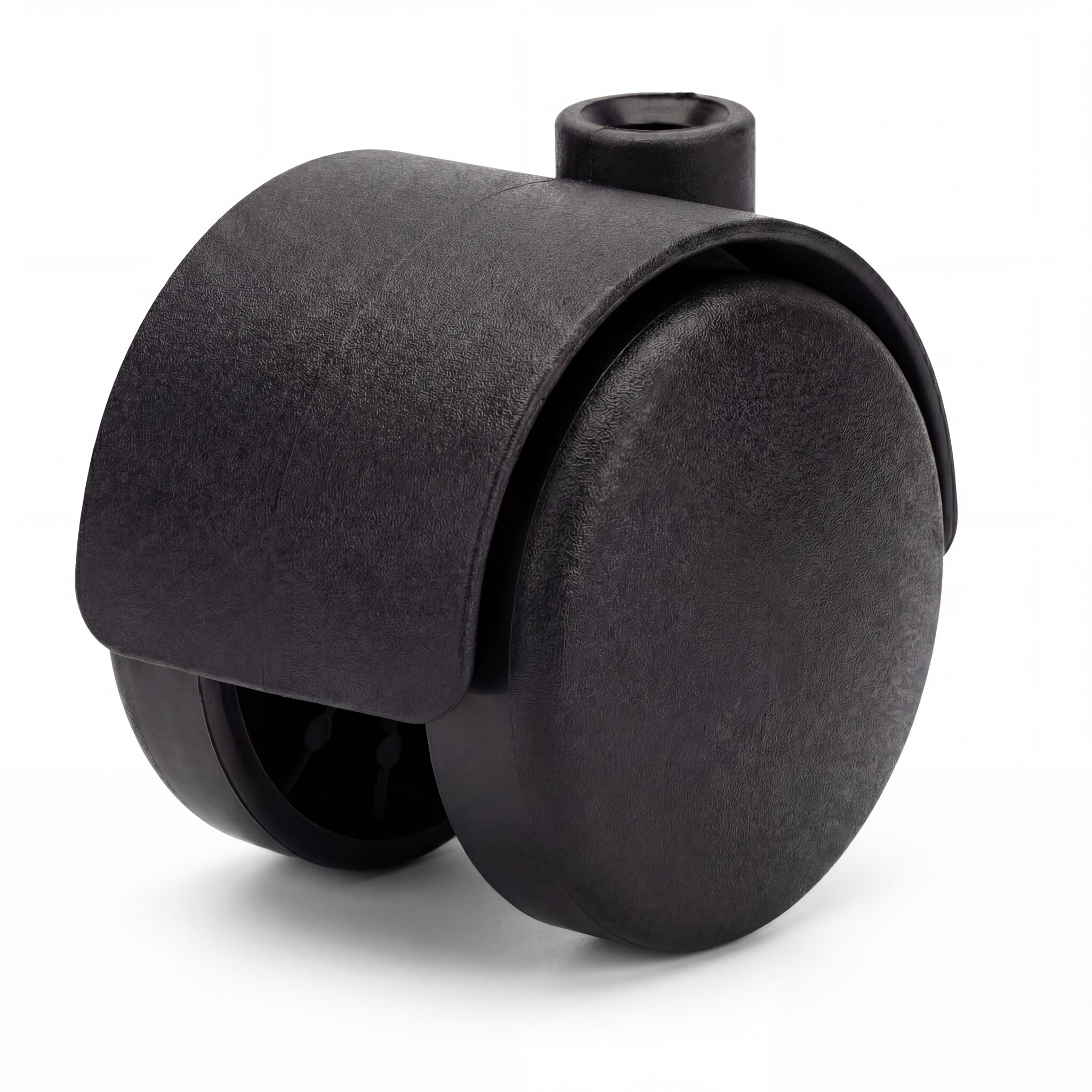 Zwart polypropyleen (pp), geschikt voor zachte ondergronden. Zwenkwiel: Dubbele wielen met kap in zwart nylon met draadstang. Behuizing gemaakt van polypropyleen (pp) stalen as. Metalen steelfitting